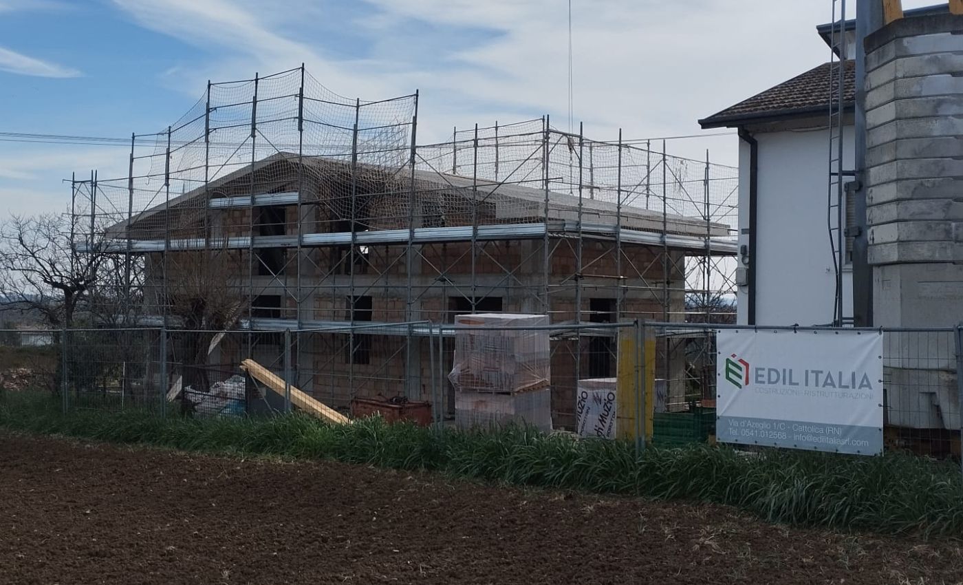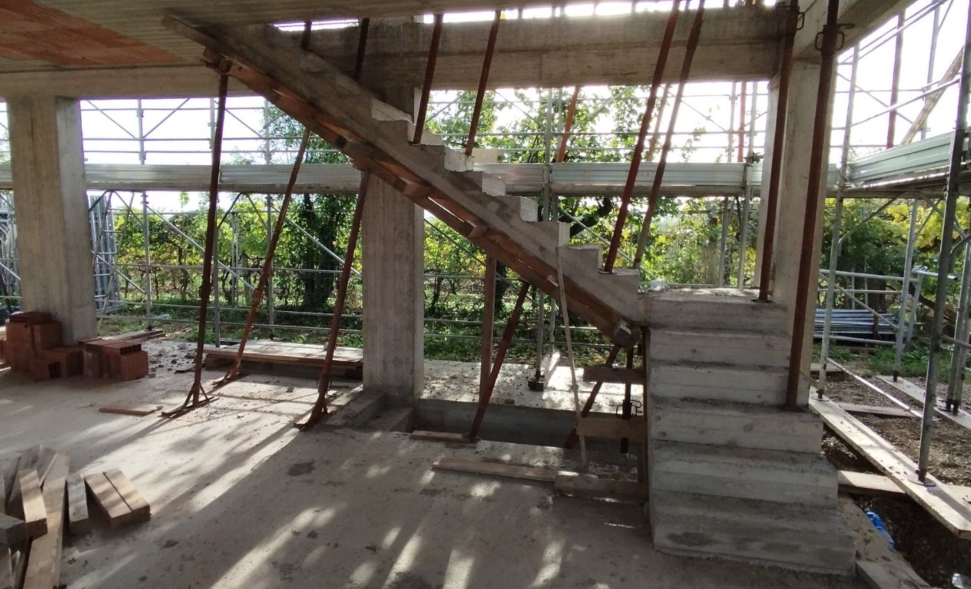 Ampliamento del fabbricato mediante realizzazione di struttura intelaiata in cemento armato, composta da piano interrato, piano terra e sottotetto. L’intervento ha previsto murature di tamponamento in blocchi, applicazione di rivestimento isolante, installazione di impianto di riscaldamento a pavimento e sistema di climatizzazione, nonché la realizzazione dei massetti, pavimenti e rivestimenti interni e finiture complete.
