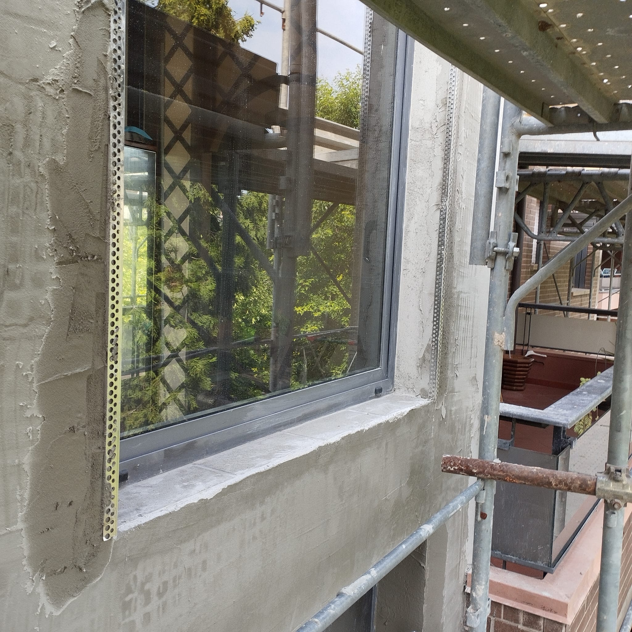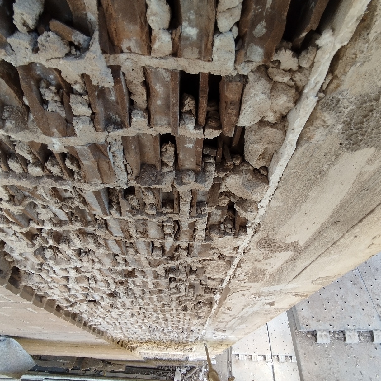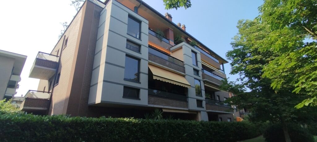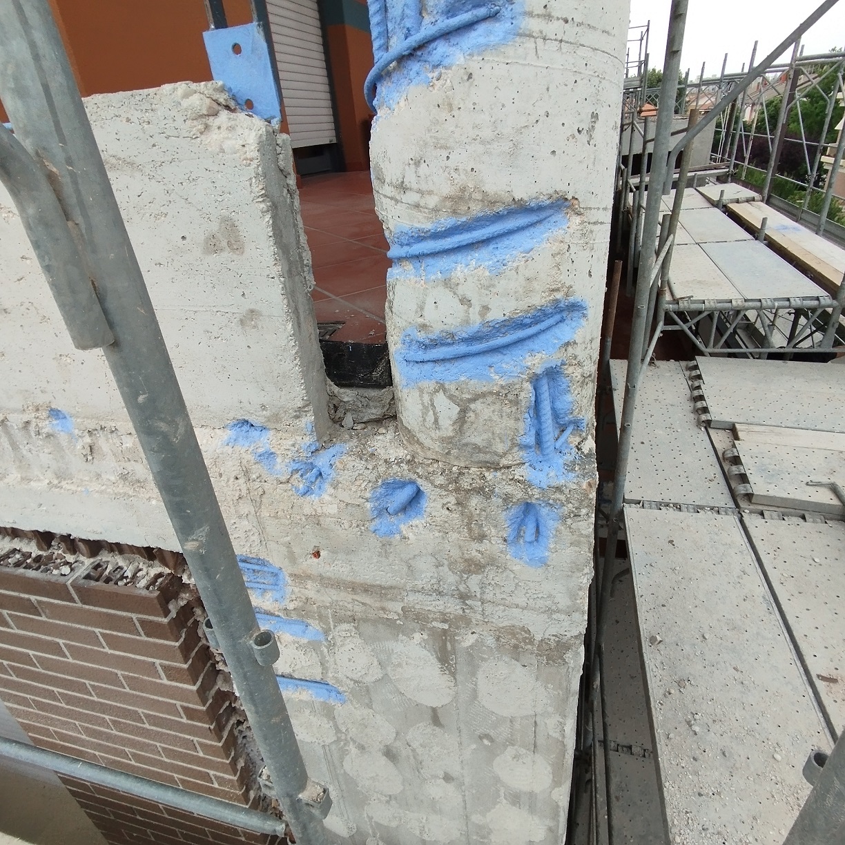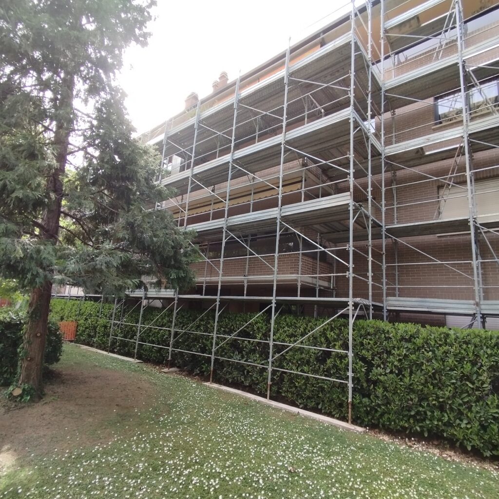Intervento di manutenzione straordinaria con rimozione su porzioni di fabbricato di rivestimenti, rasatura armata e pittura a disegno, ripristino del calcestruzzo armato ammalorato e consolidamento con malta fibrata